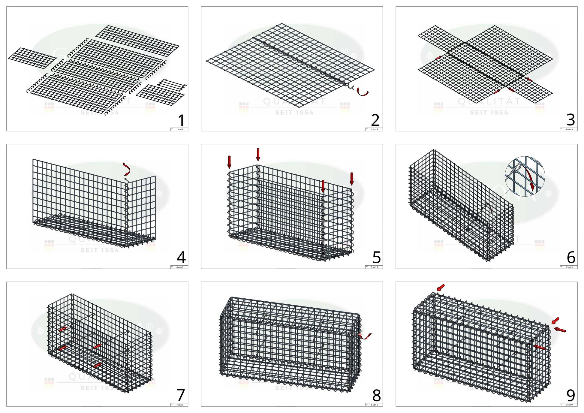 Leveringsomfanget omfatter 12 net pr. faskine, spiraler til tilslutning og afstandsstykker til stabilisering af formen.