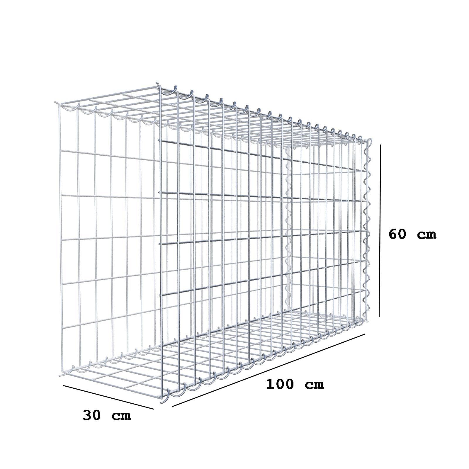 Opvokset gabion type 2 100 cm x 60 cm x 30 cm (L x H x D), maskestørrelse 5 cm x 10 cm, spiral