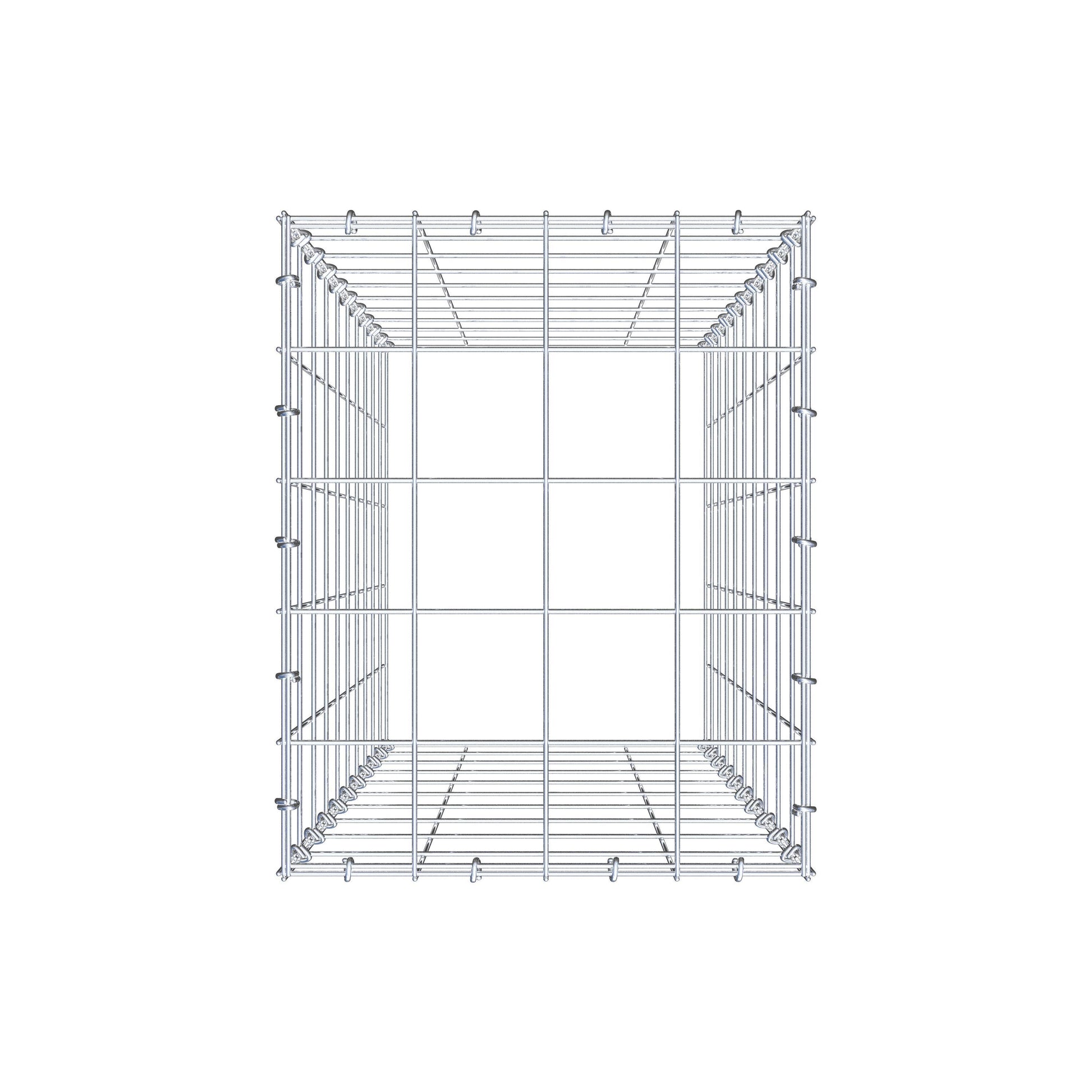 - Hinweis: kein eigenes Bodengitter – die Verbindung erfolgt über das Deckelgitter und den Verschluss der unteren Gabione.