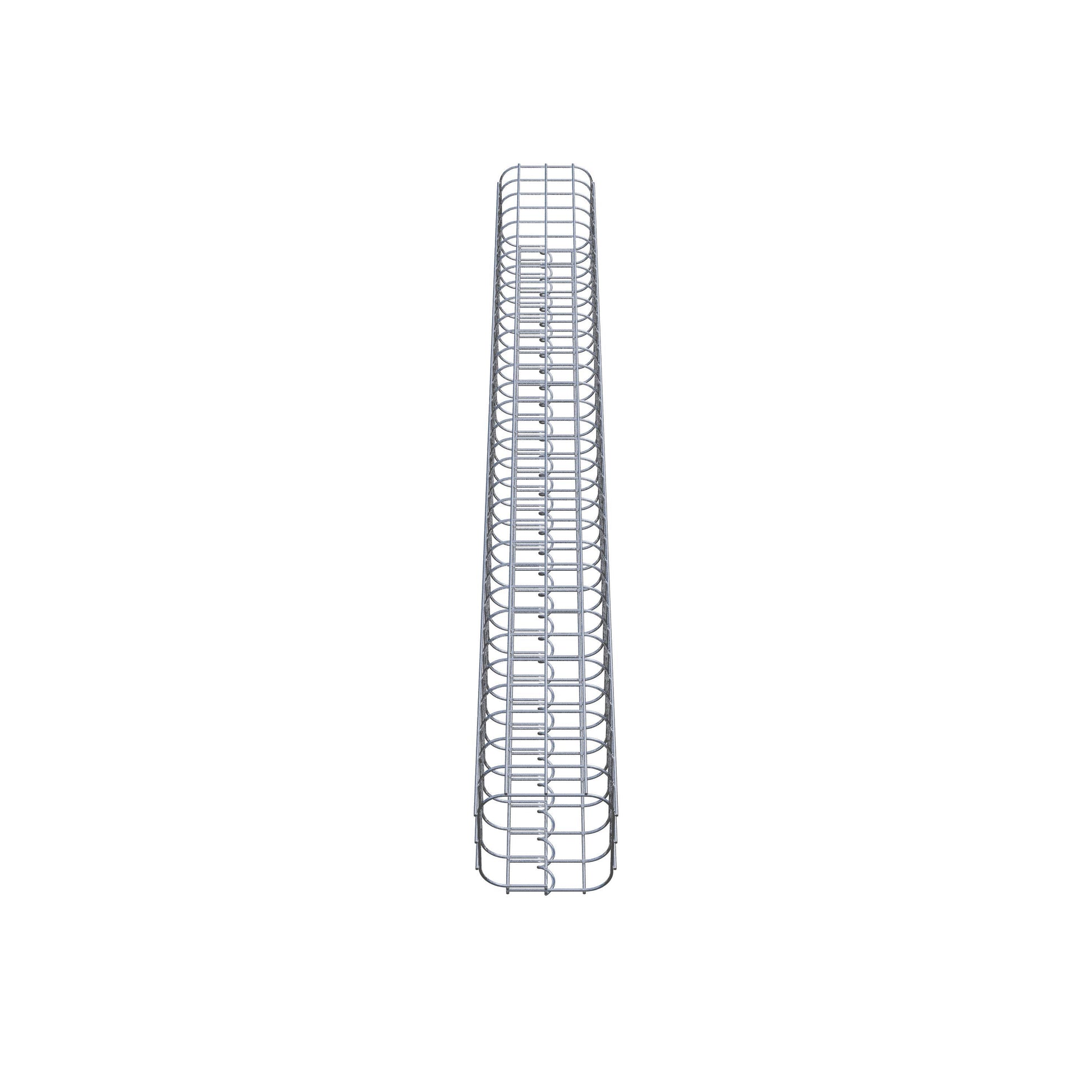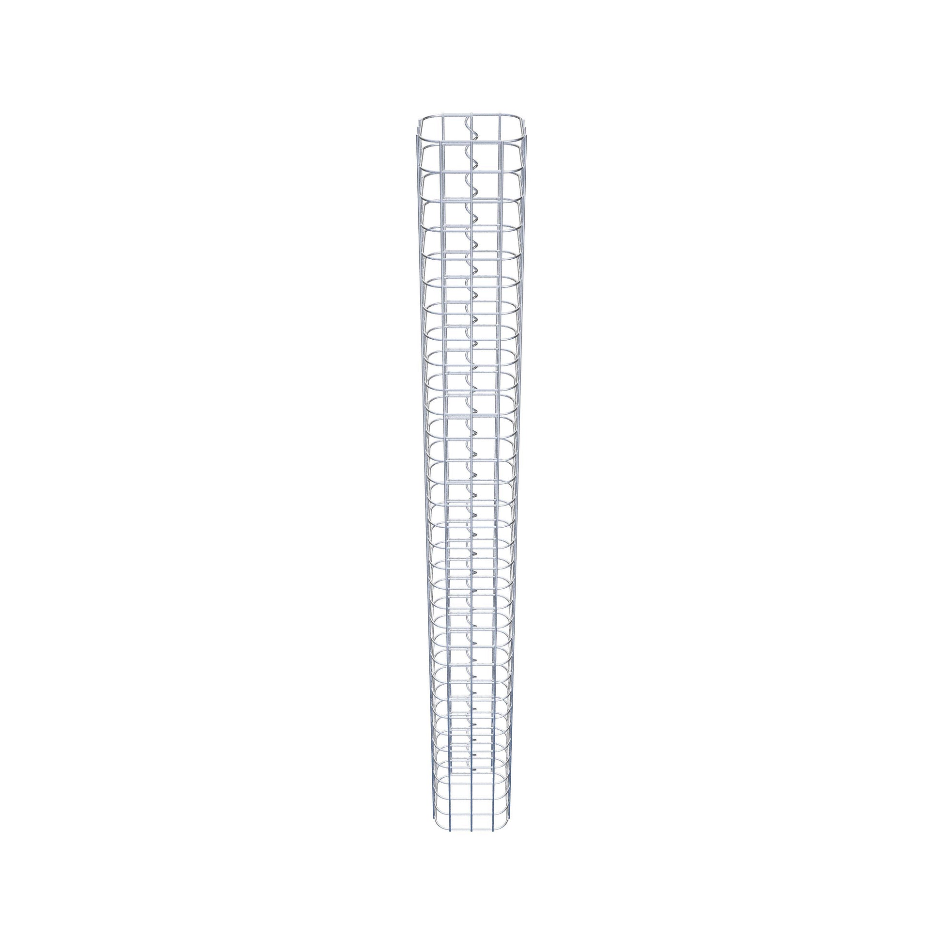 Der seitliche Verschluss erfolgt an der einzigen Überlappungsstelle des Gitters mit einer Spirale, die einfach eingedreht und zusammengedrückt wird. So entsteht eine saubere, sichere und dauerhafte Verbindung. Alternativ kann die Gabionensäule auch mit Klammern verschlossen werden, die separat erhältlich sind. Die Säulen sind nach oben und unten offen – ein Bodengitter oder Deckel ist nicht erforderlich und daher nicht im Lieferumfang enthalten. Bei Bedarf kann ein Deckel zusätzlich erworben werden.