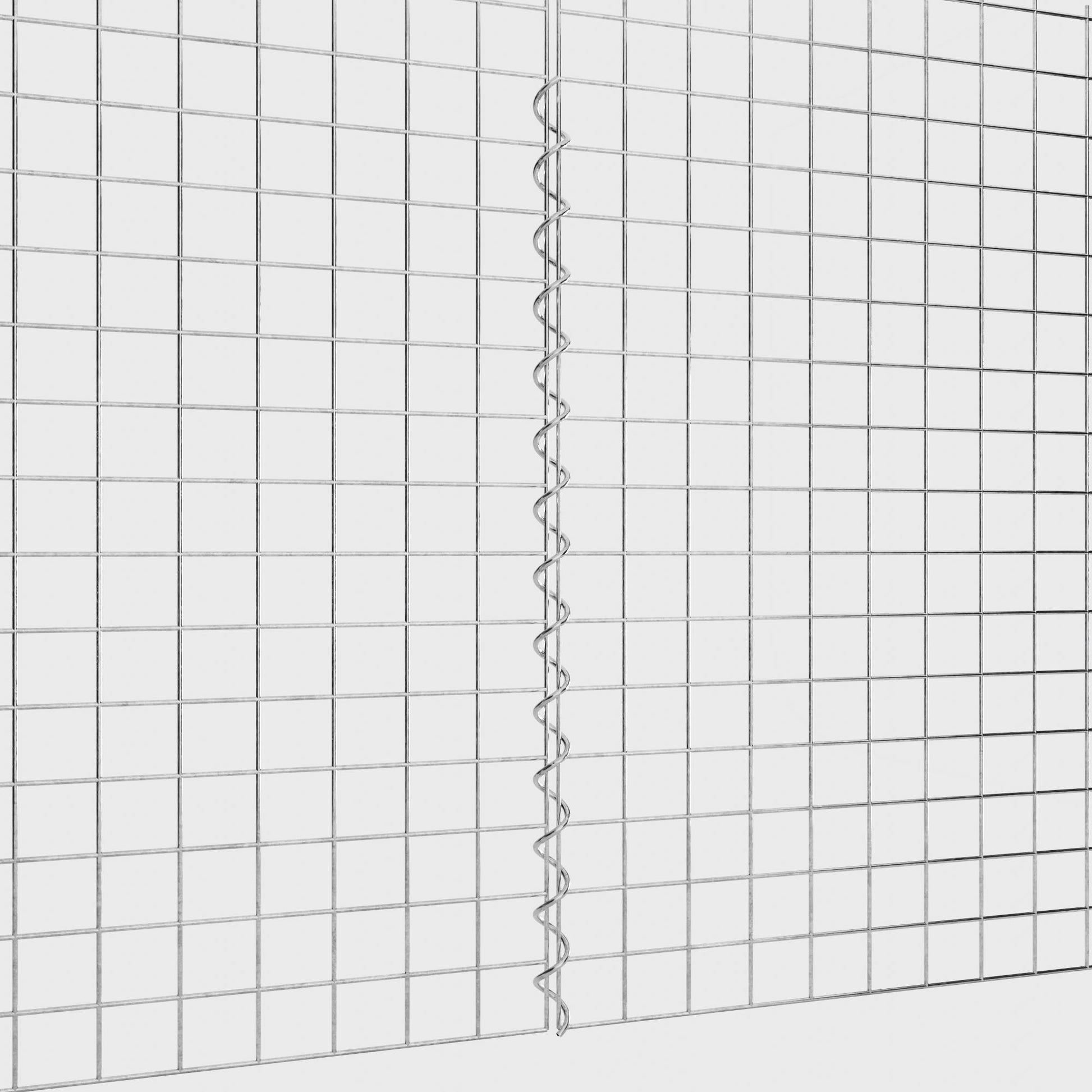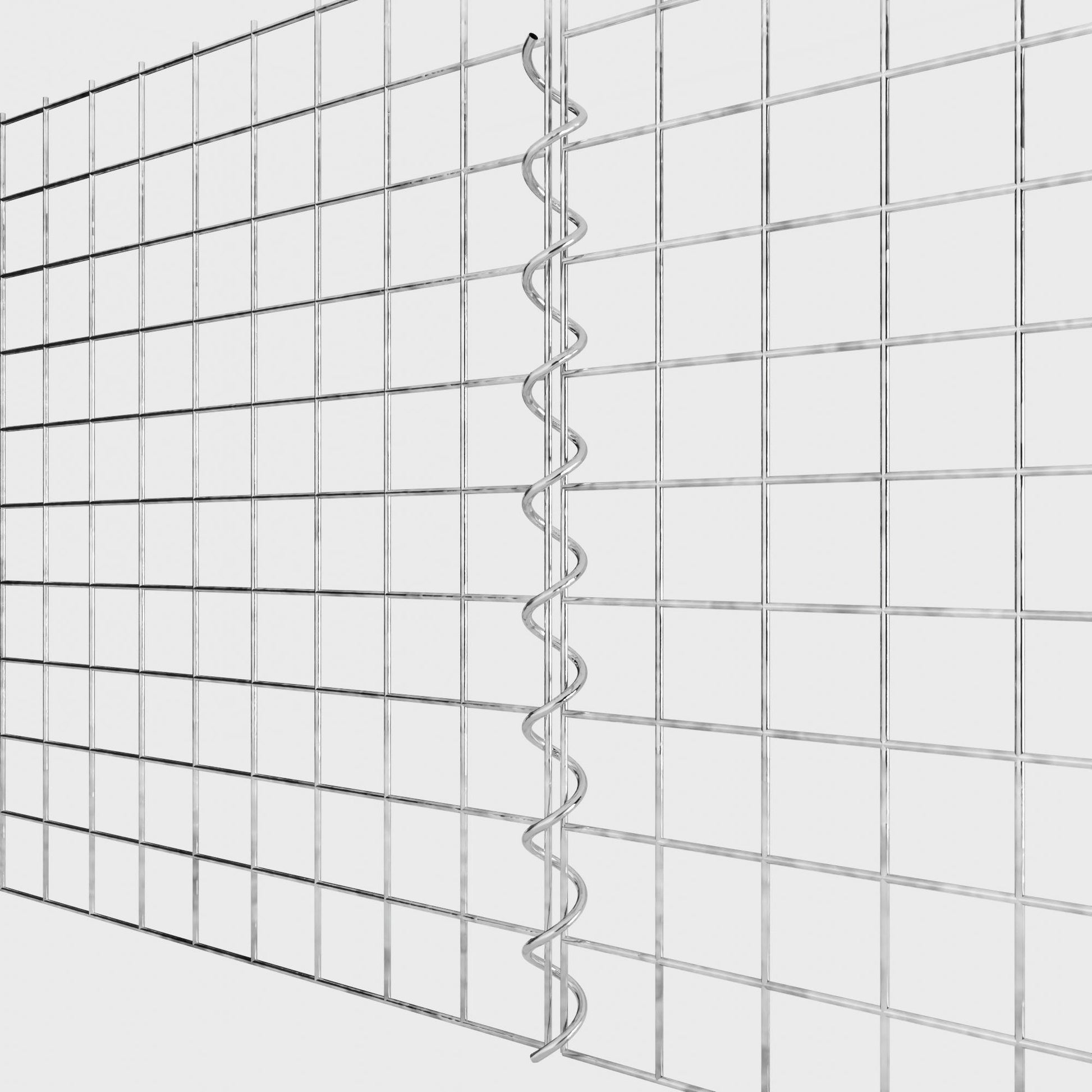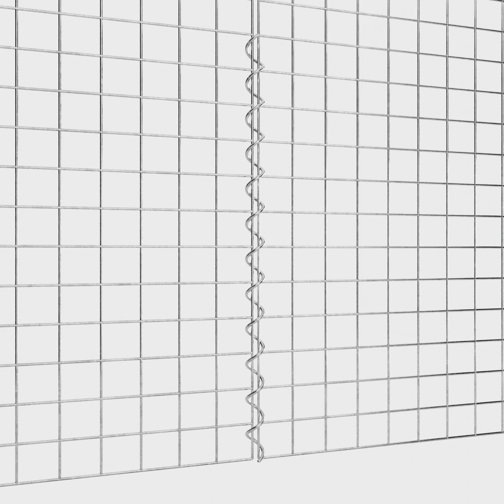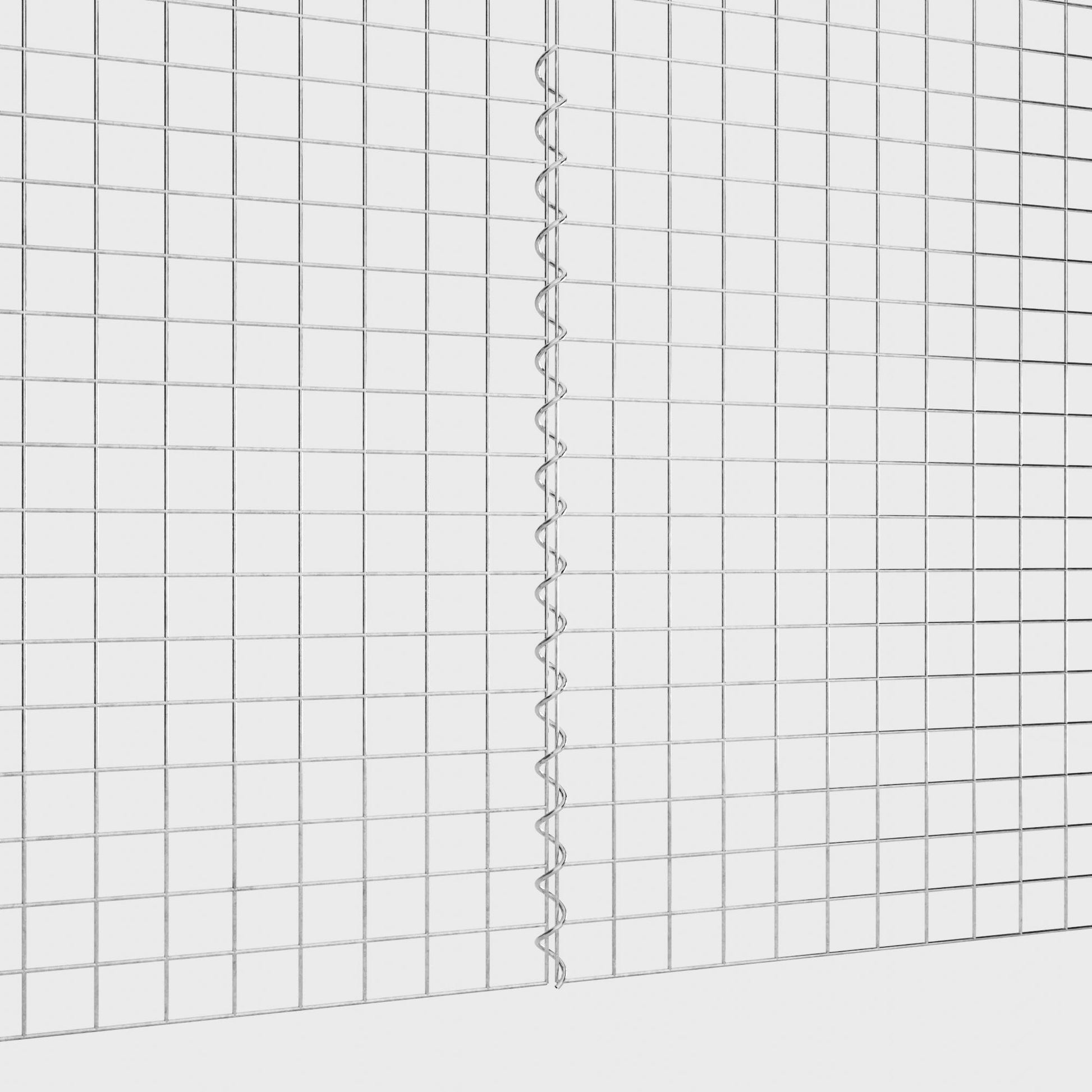 The spirals are made of 4 mm thick galvanized wire and are simply screwed into the edges of the mesh panels. This creates a stable connection that is both functional and visually appealing. Thanks to the tight screw connection, the mesh mats interlock precisely and form a strong, durable unit - ideal for gabion walls, raised beds, pillars or garden furniture.