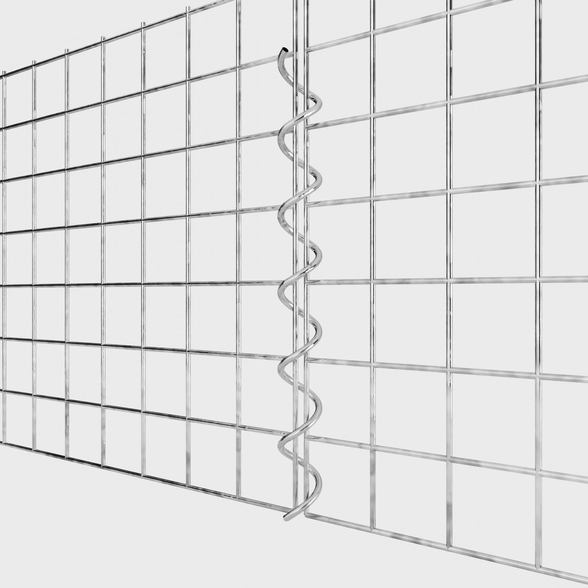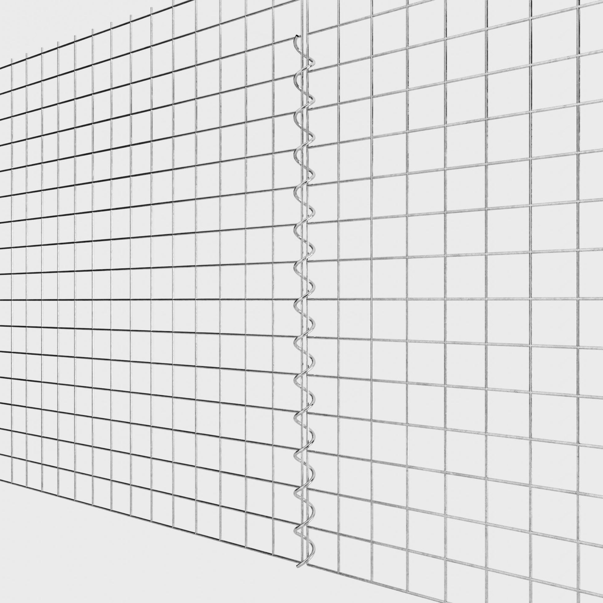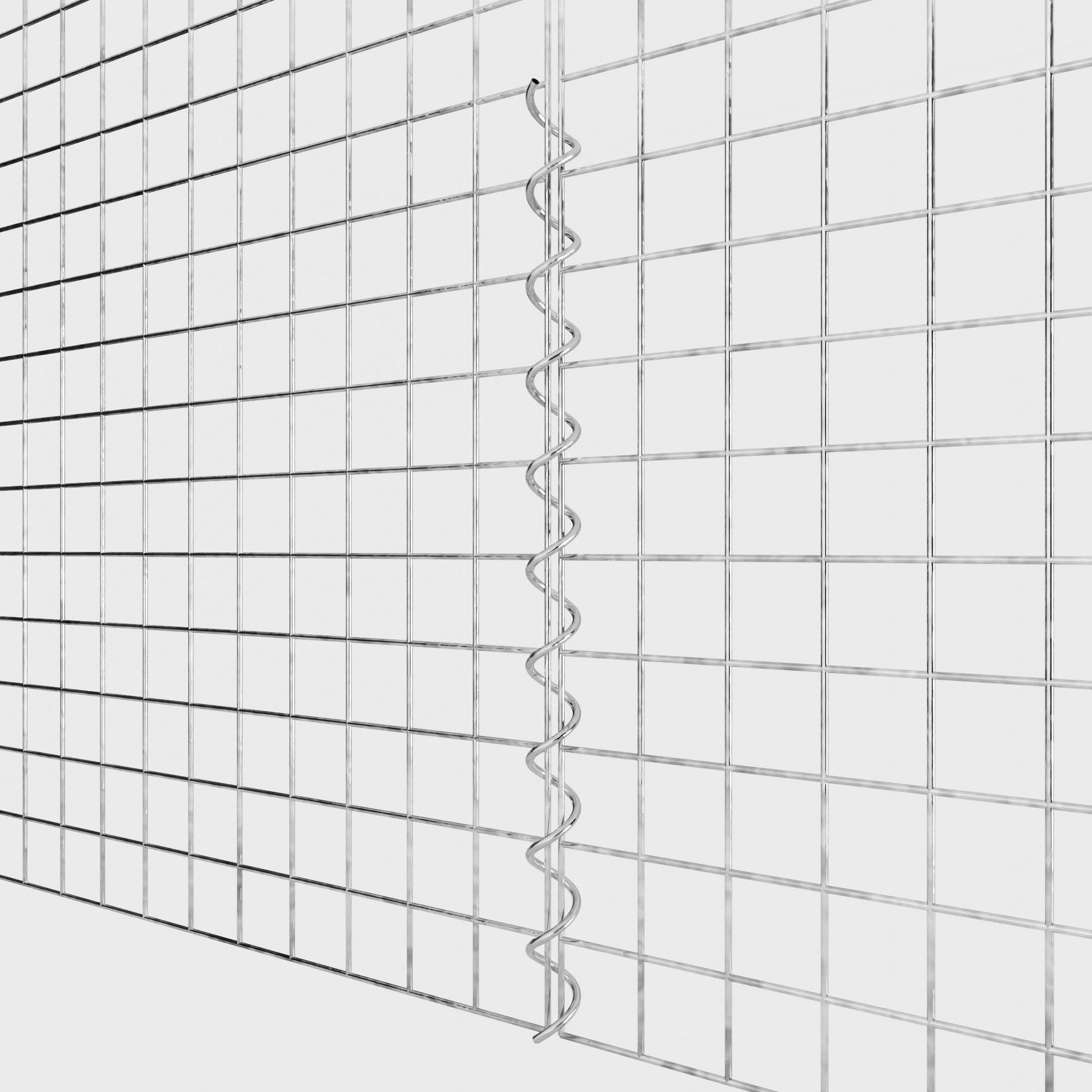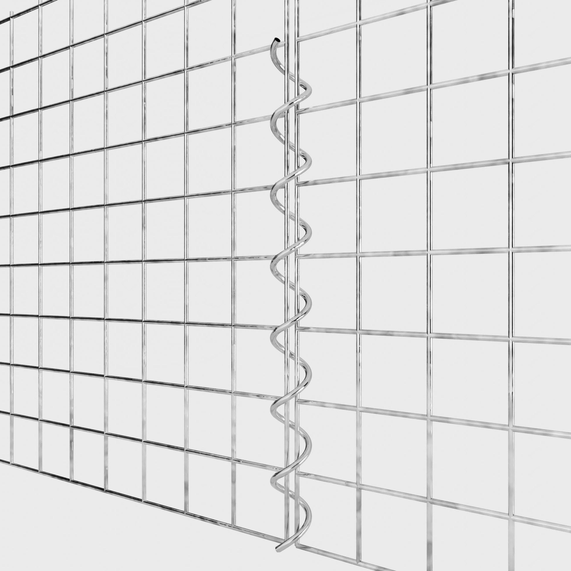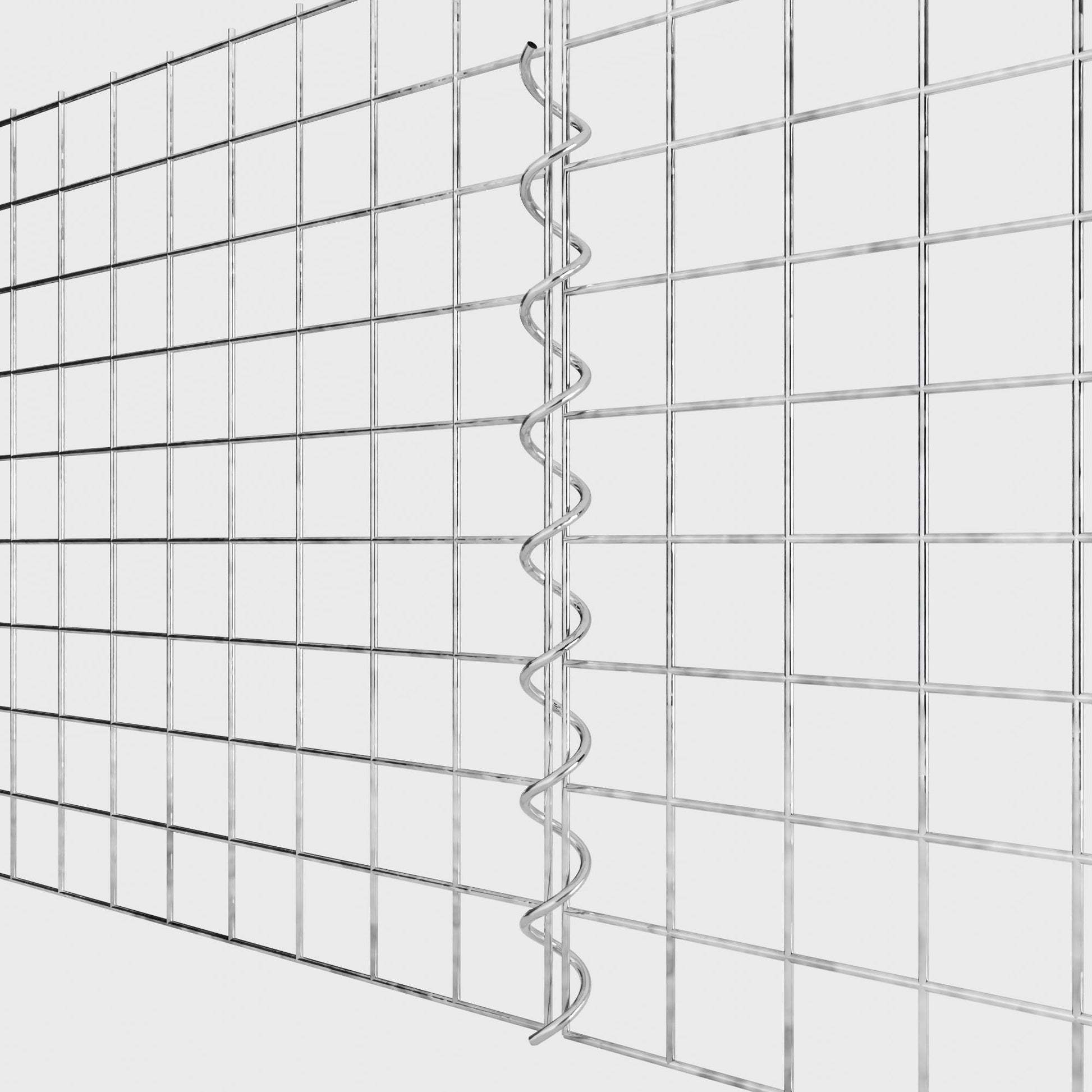 The spirals are made of 4 mm thick galvanized wire and are simply screwed into the edges of the mesh panels. This creates a stable connection that is both functional and visually appealing. Thanks to the tight screw connection, the mesh mats interlock precisely and form a strong, durable unit - ideal for gabion walls, raised beds, pillars or garden furniture.
