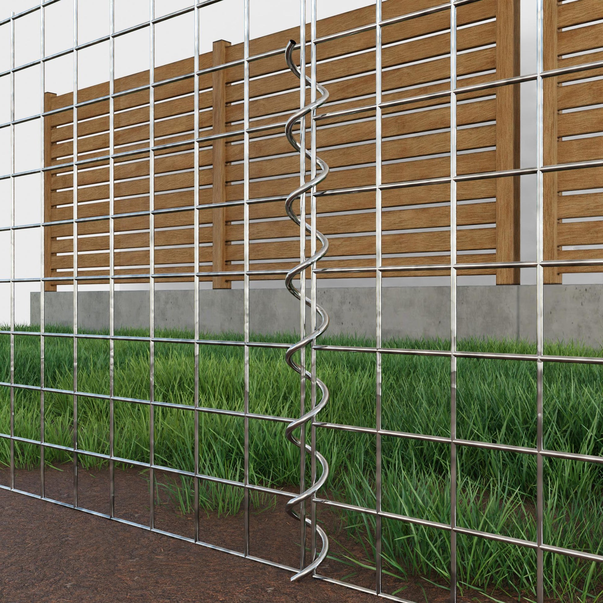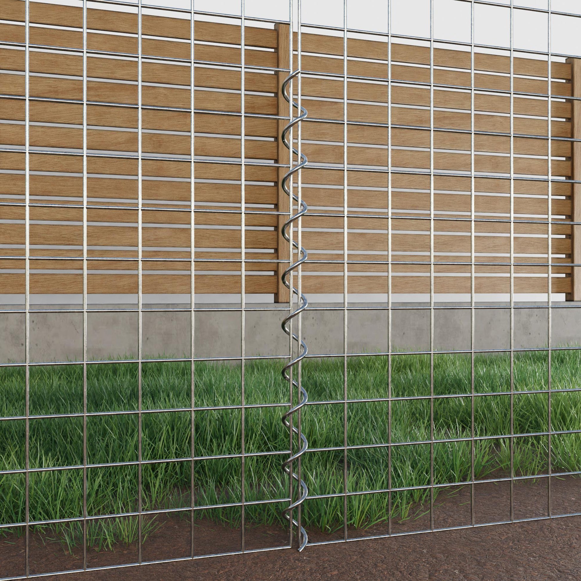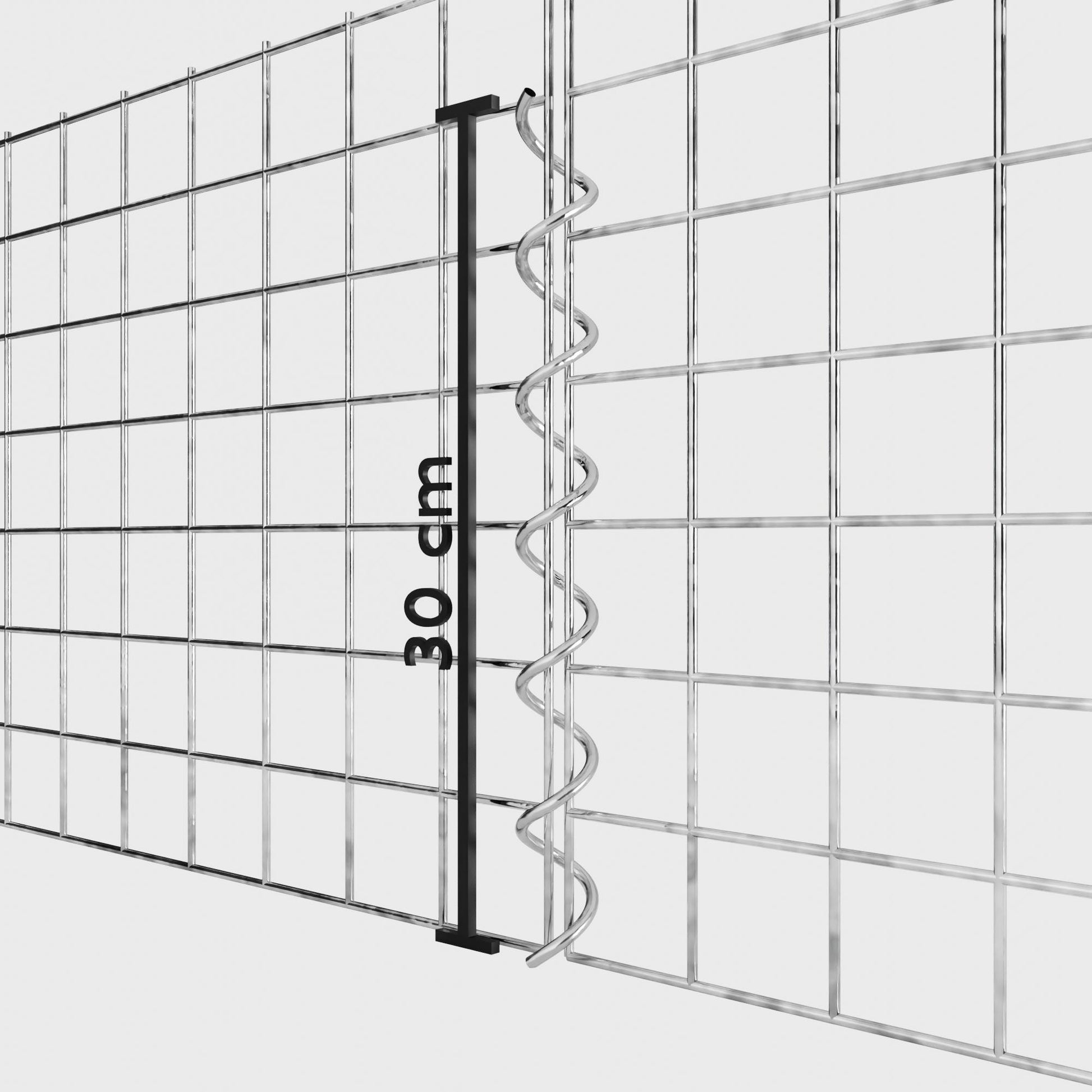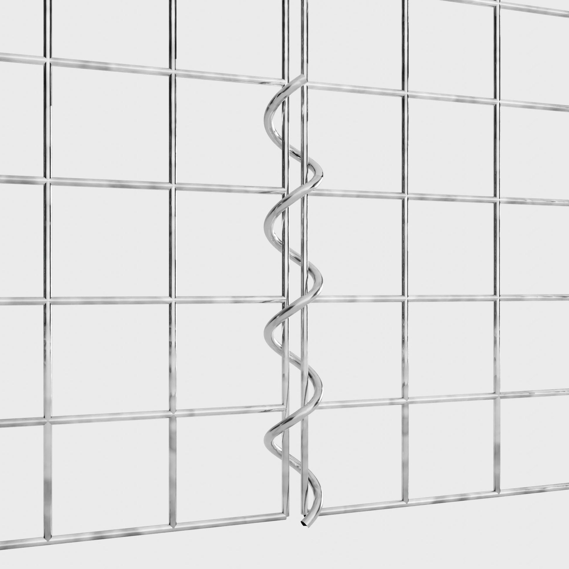 The spirals are made of 4 mm thick galvanized wire and are simply screwed into the edges of the mesh panels. This creates a stable connection that is both functional and visually appealing. Thanks to the tight screw connection, the mesh mats interlock precisely and form a strong, durable unit - ideal for gabion walls, raised beds, pillars or garden furniture.