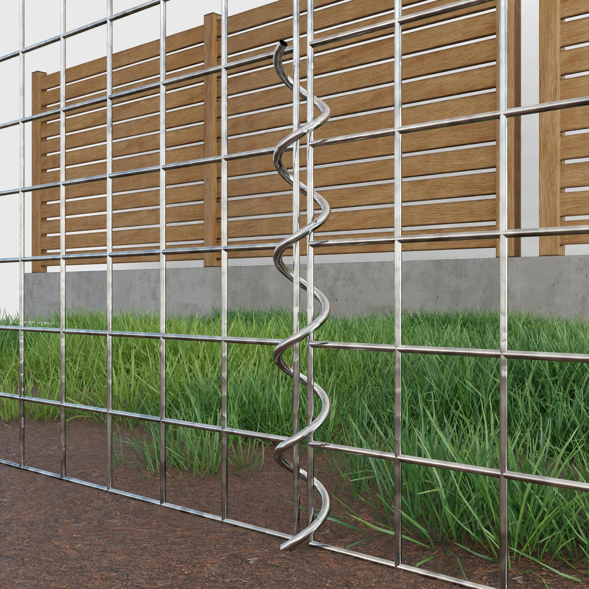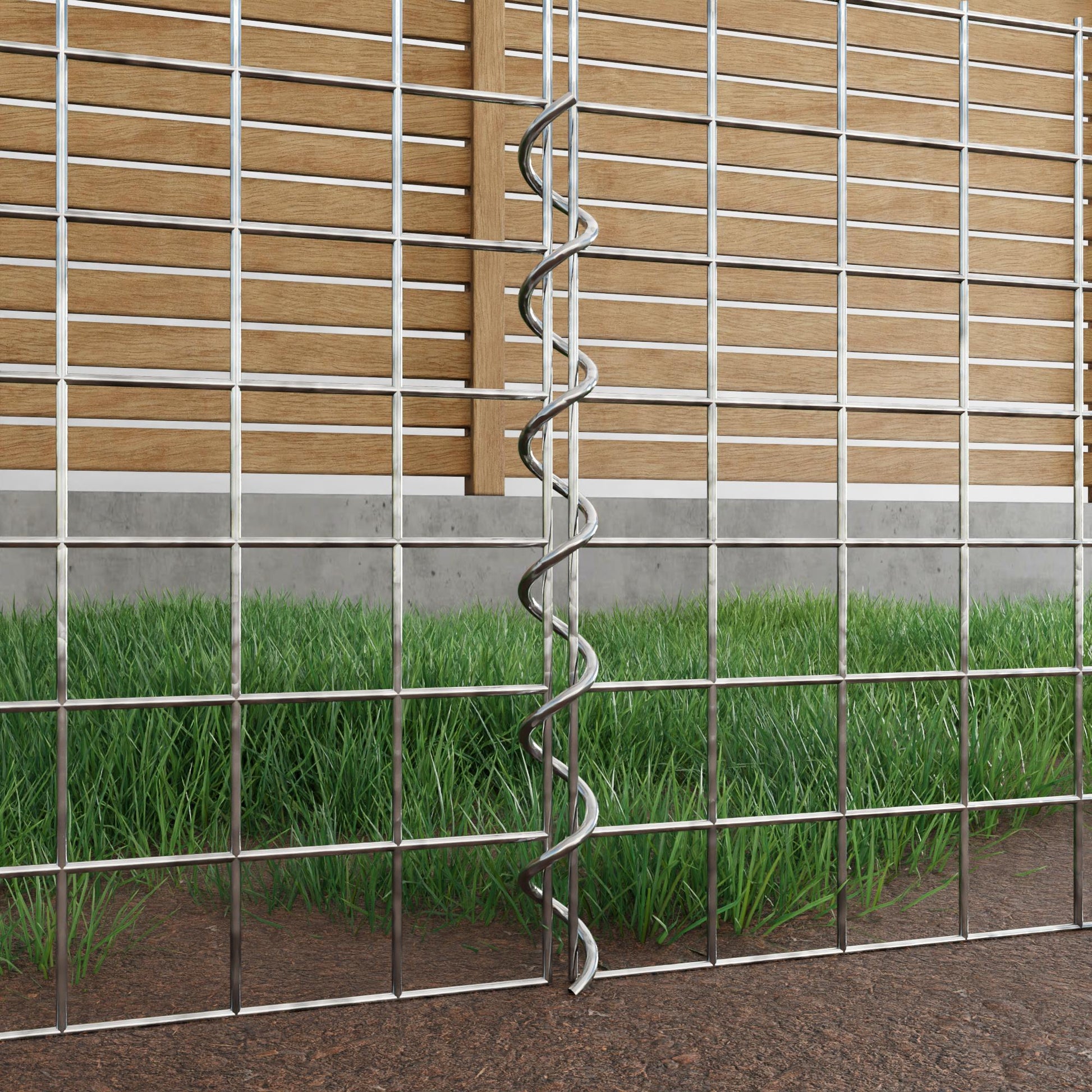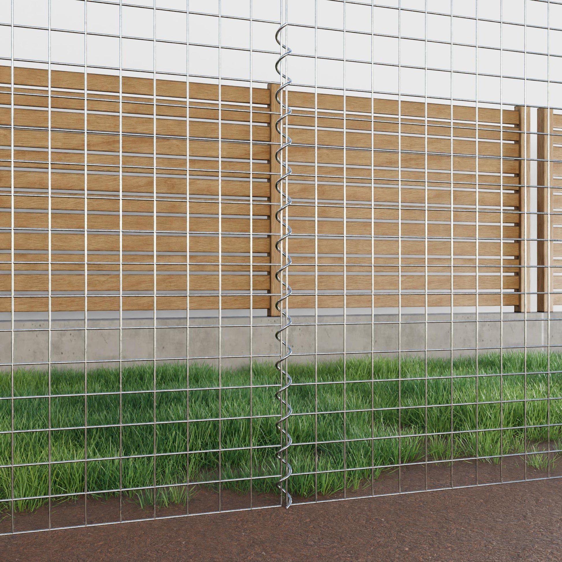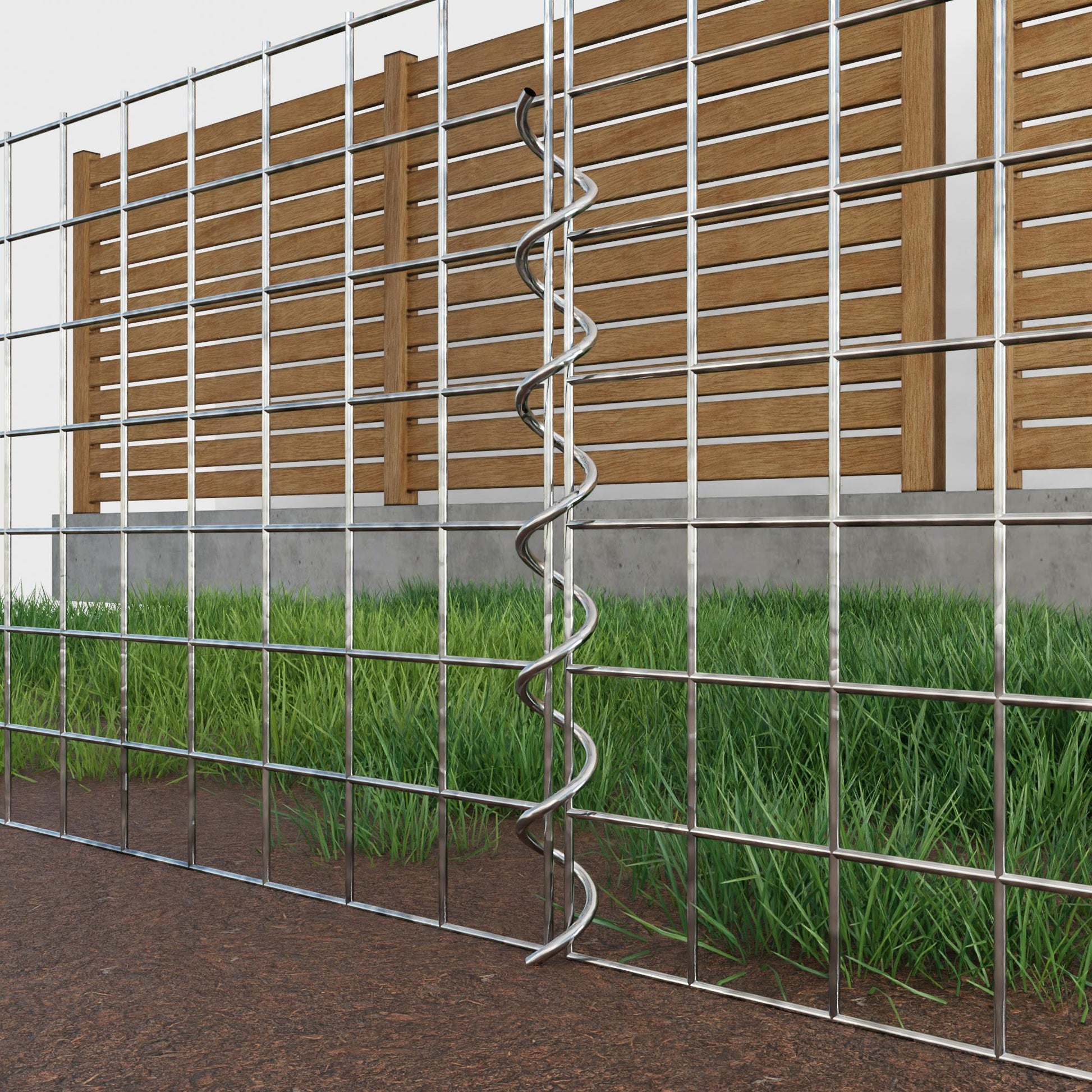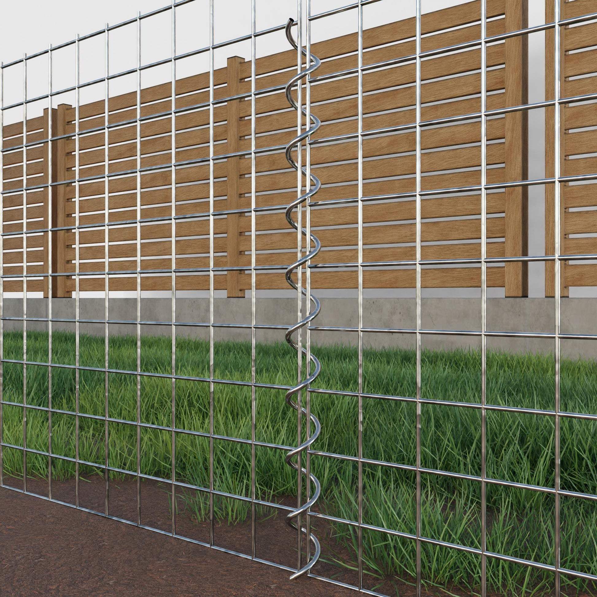 The spirals are made of 4 mm thick galvanized wire and are simply screwed into the edges of the mesh panels. This creates a stable connection that is both functional and visually appealing. Thanks to the tight screw connection, the mesh mats interlock precisely and form a strong, durable unit - ideal for gabion walls, raised beds, pillars or garden furniture.
