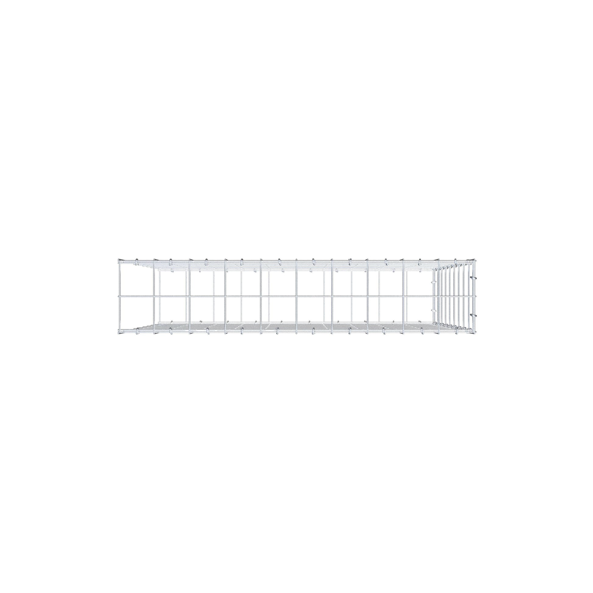 Bei dieser Gabione fehlt ein Stirngitter. Das ermöglicht Ihrer Gabione in die Länge zu wachsen.