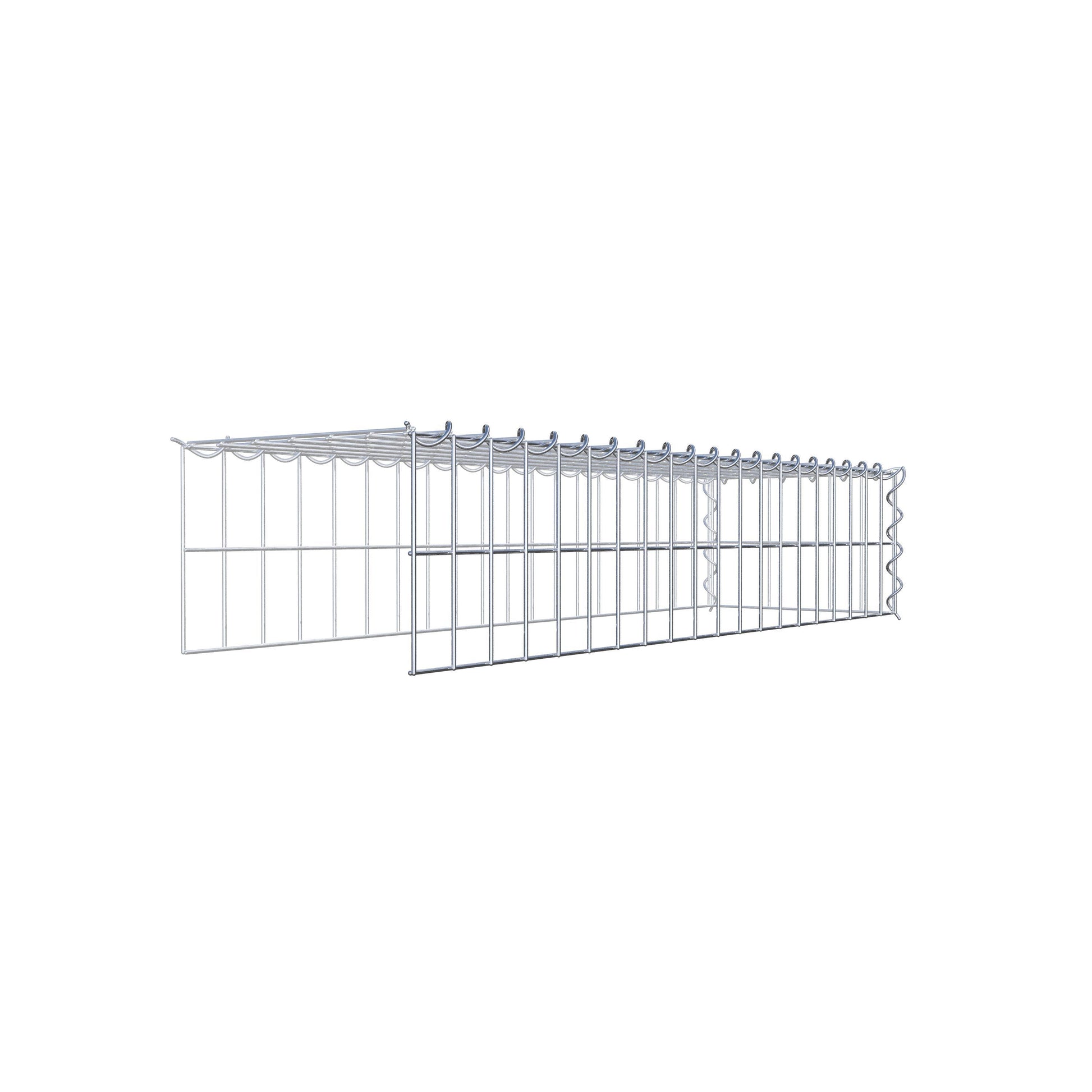 Este gavión no tiene rejilla frontal ni en la base. Esto permite que su gavión crezca tanto en longitud como en altura. Tenga en cuenta que el