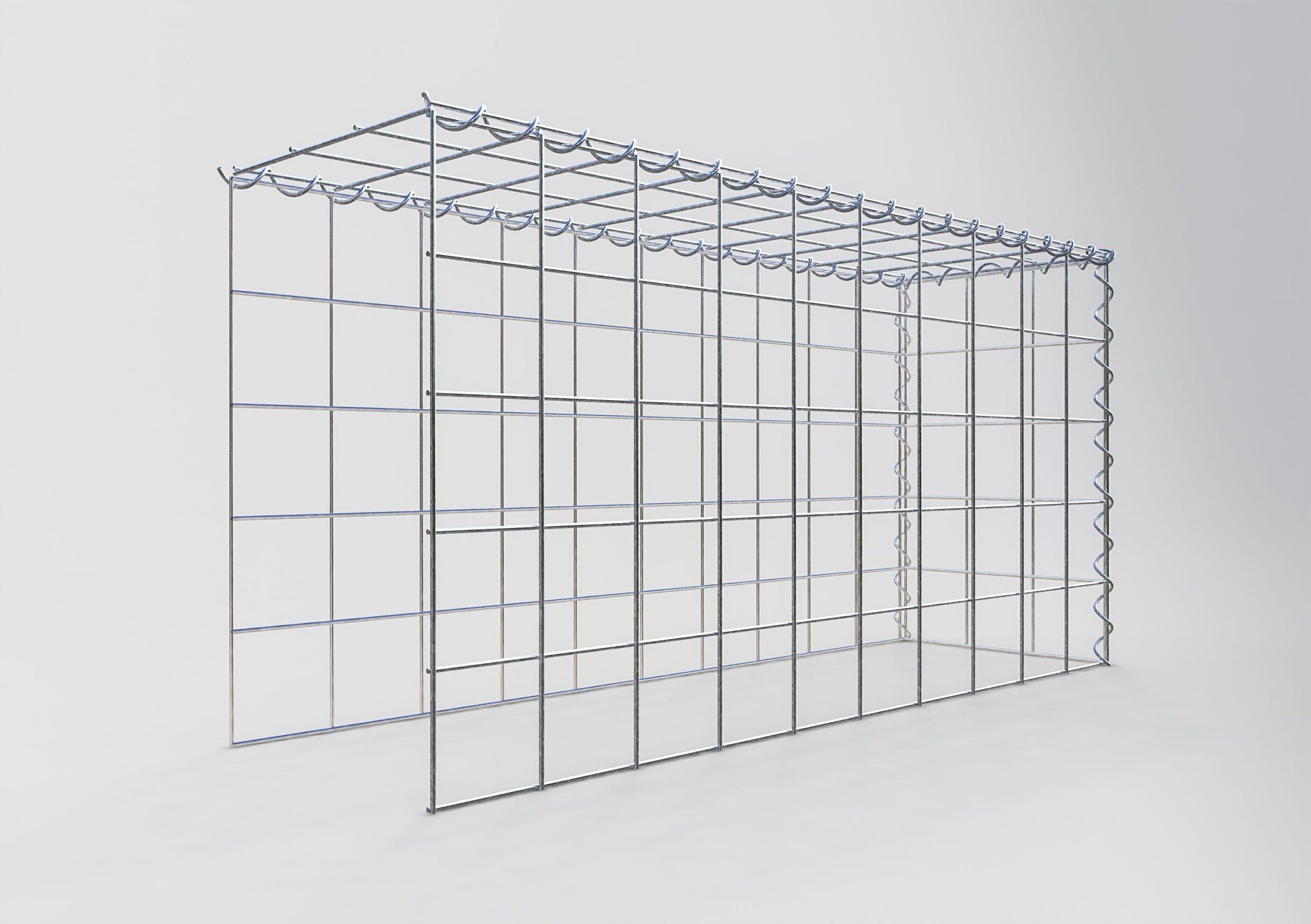A este gavión le faltan una rejilla delantera e inferior. Esto permite que su gavión crezca tanto en longitud como en altura. Tenga en cuenta que el