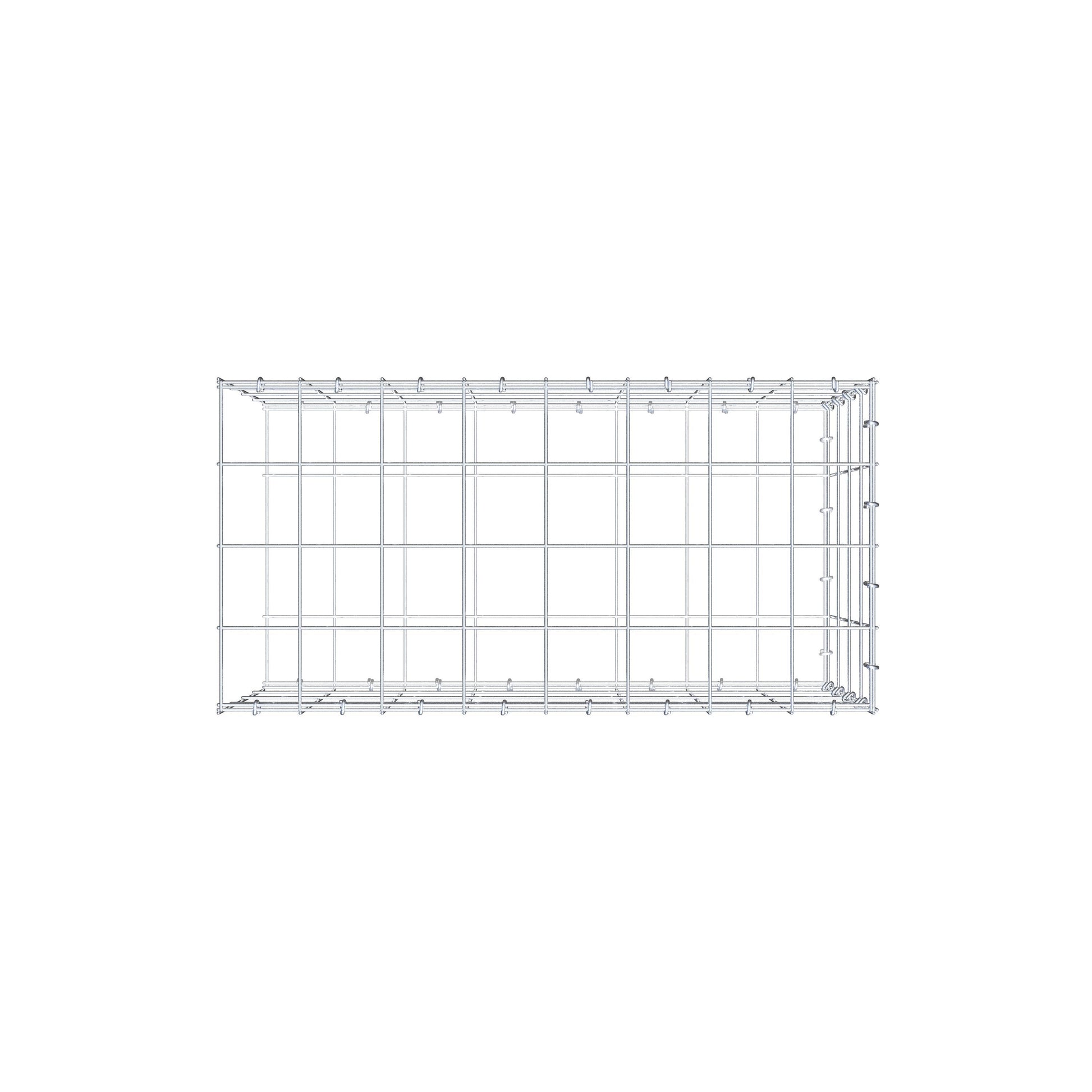 Bei dieser Gabione fehlt ein Stirngitter. Das ermöglicht Ihrer Gabione in die Länge zu wachsen.