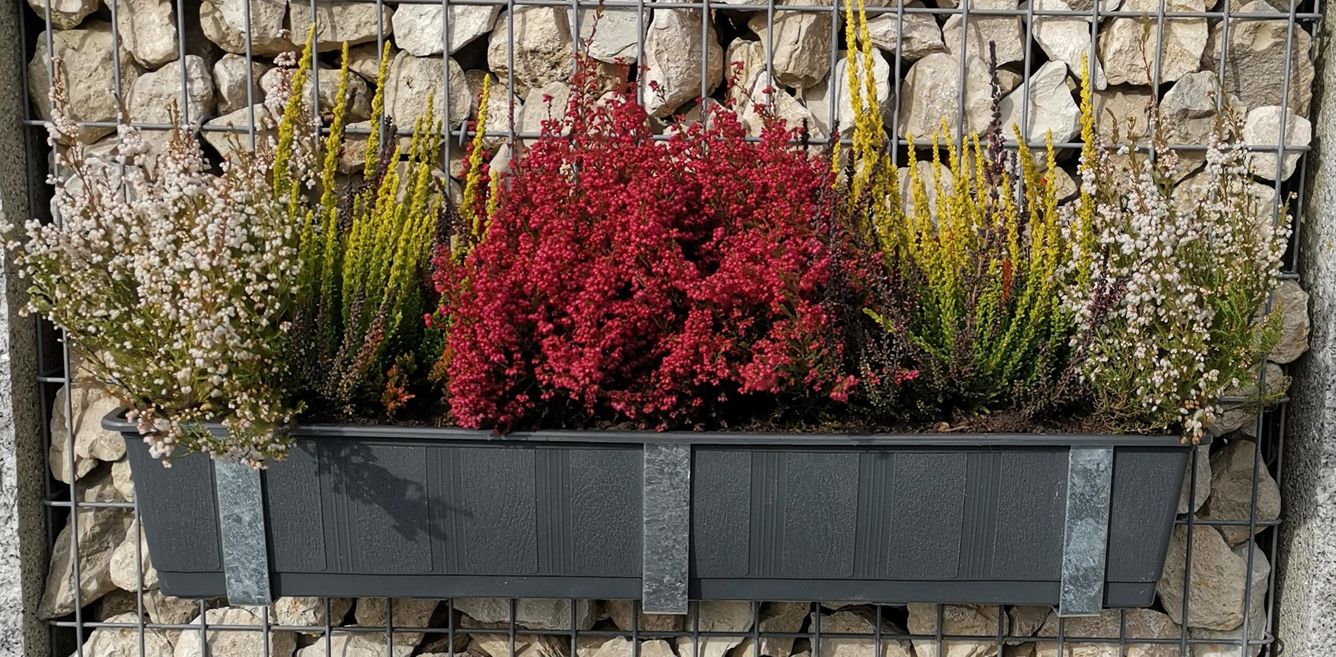 Versier je schanskorf naargelang het seizoen! Met de beugels voor bloembakken kun je de plantenbakken eenvoudig aan de stenen mand bevestigen. De schanskorf kan al gevuld zijn met stenen. De beugels worden eenvoudig in de roosters gehaakt en de plantenbak wordt erin geplaatst. Ze passen perfect voor onze manden met een maaswijdte van 5 x 10 cm en zijn zeer robuust. Met een materiaaldikte van 3,5 mm en een breedte van 3 cm houden ze je planten stevig vast. Dankzij de hoogwaardige thermische verzinking zijn ze goed en permanent beschermd tegen corrosie, zodat je er nog vele zomers van kunt genieten. De plantenbak, die perfect bij de beugels past, wordt ook meegeleverd. De plantenbak meet ongeveer 80 x 17 x 14 cm. Hij is gemaakt van hoogwaardig kunststof in antraciet.