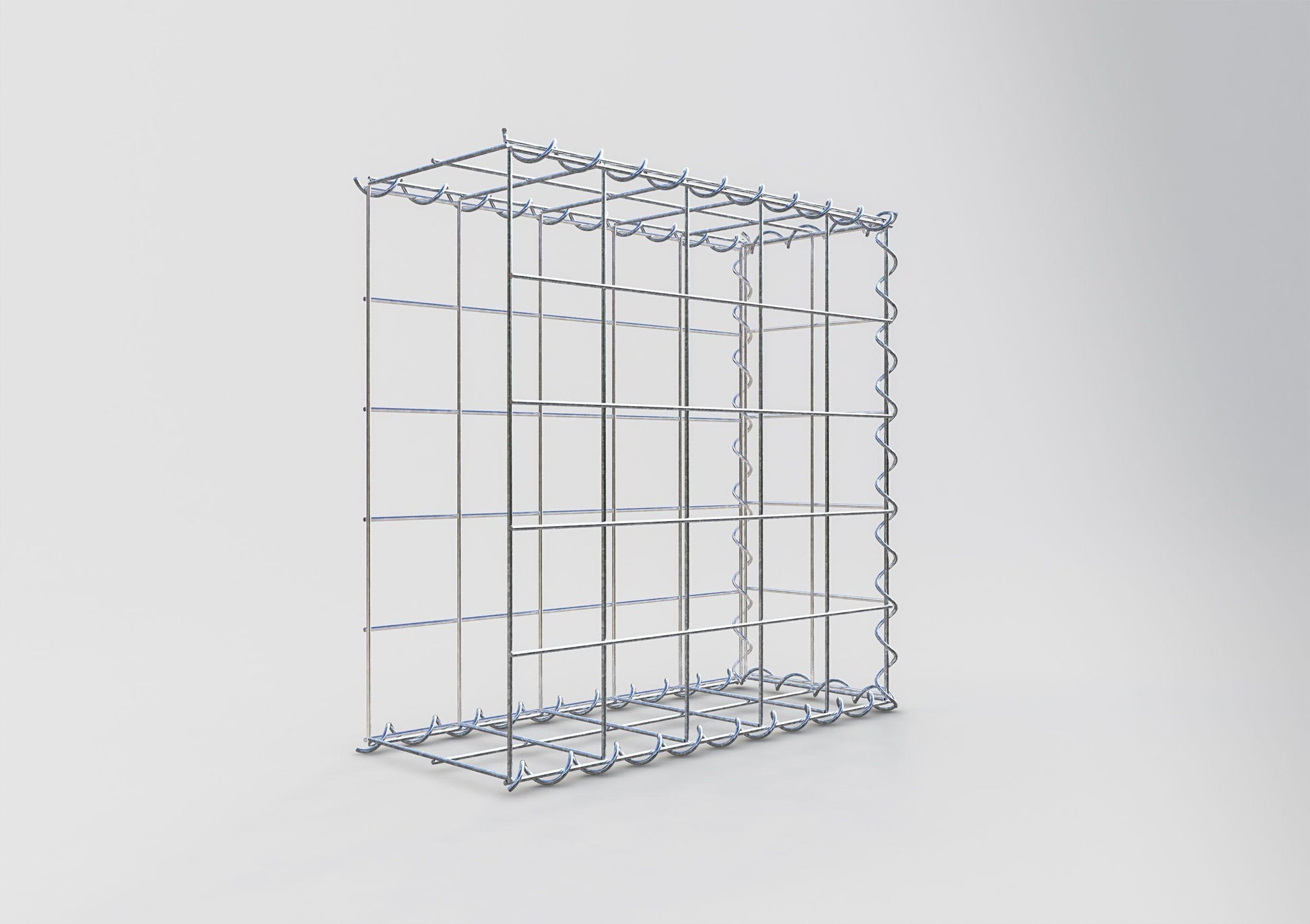 Koppla ihop gallren utan verktyg - snabbt, enkelt och säkert. Spiralerna är det enklaste sättet att bygga stabila gabioner av våra galler. Den 4 mm tjocka tråden böjs till en spiralform och vrids genom nätet vid kanterna. Vrid spiralen längs kanten så att gallren blir jämnt och stadigt förbundna med varandra.