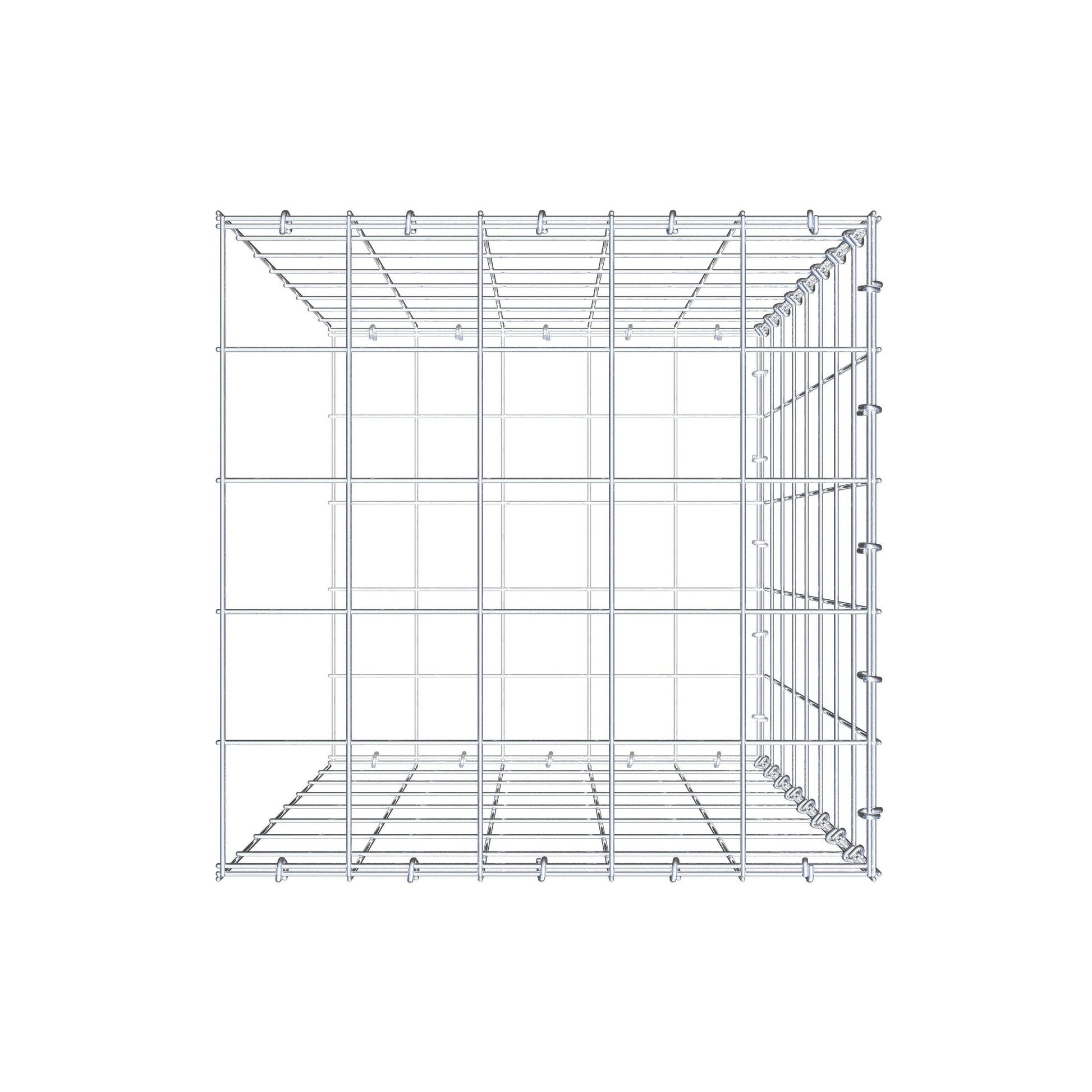 - Obs: inget separat frontgaller och inget fästelement på denna sida - anslutningen sker via fästelementet på den första gabionen.