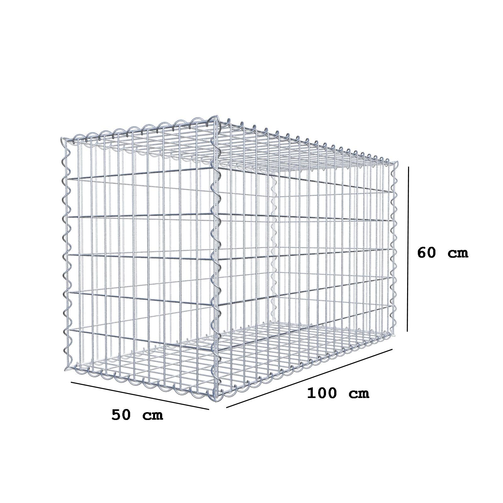 Gabion 100 cm x 60 cm x 50 cm (L x H x D), maskstorlek 5 cm x 10 cm, spiral