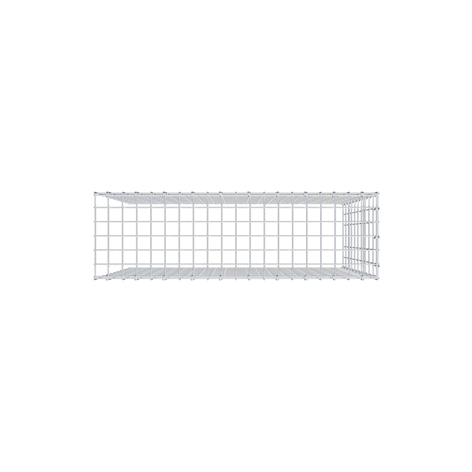 Este gabião não tem grade frontal e inferior. Isso permite que seu gabião cresça tanto em comprimento quanto em altura.