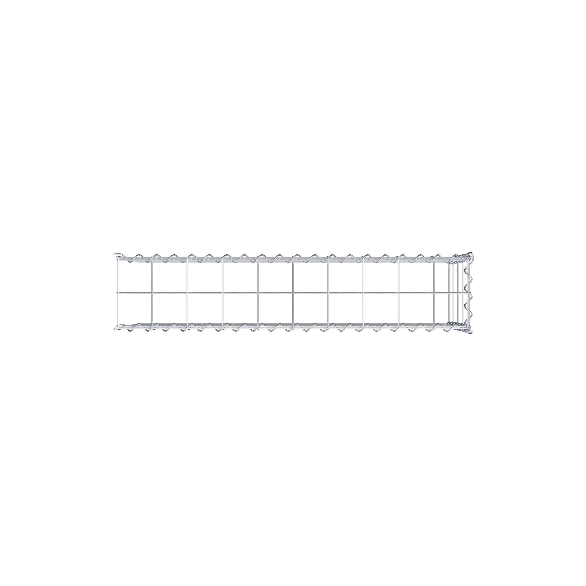 Este gabião não tem grade frontal e inferior. Isso permite que seu gabião cresça tanto em comprimento quanto em altura. Observe que o