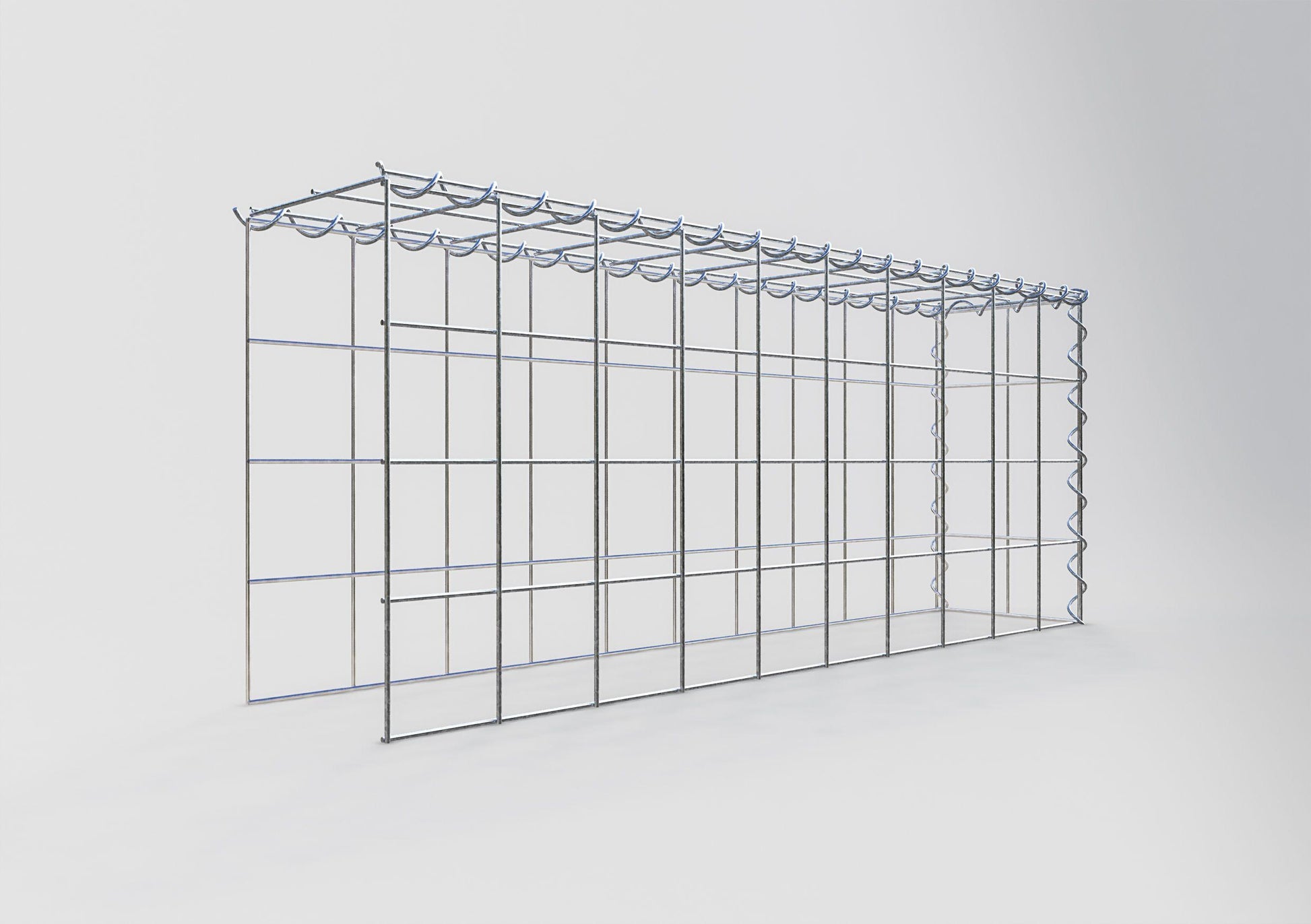 Espirais são a maneira mais fácil de construir um gabião a partir de nossa malha. A montagem é rápida e fácil;