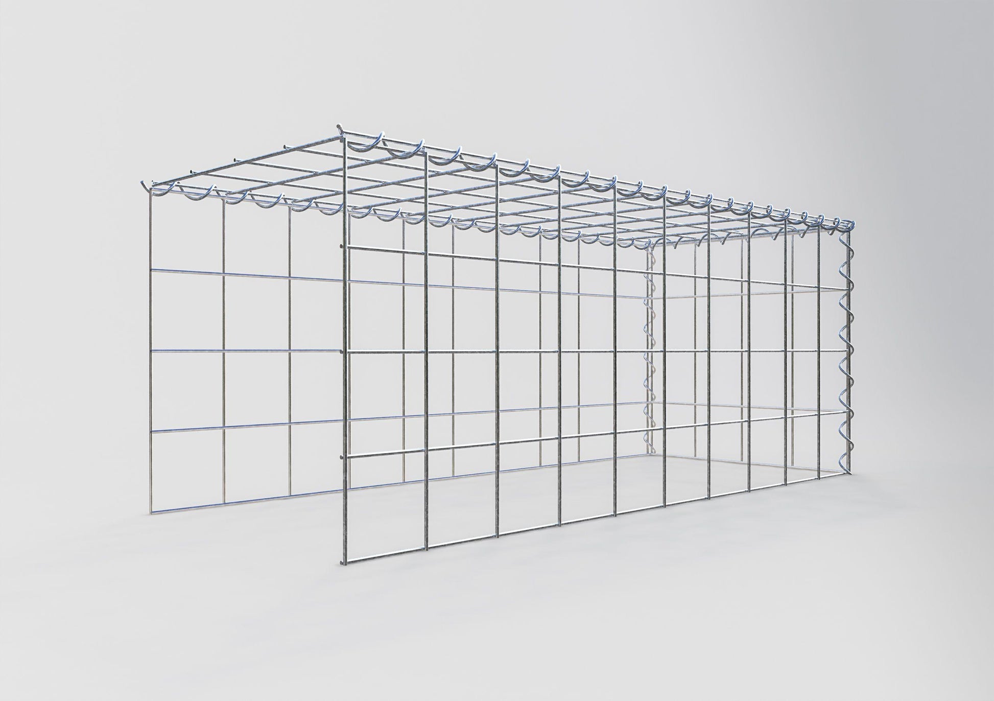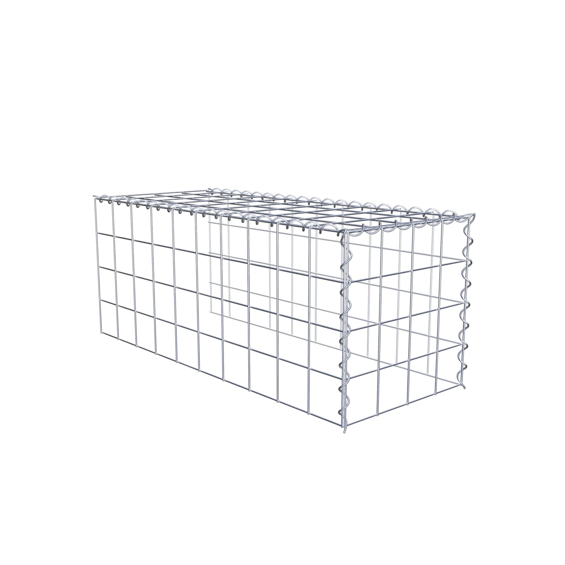 Este gabião não tem grade frontal e inferior. Isso permite que seu gabião cresça tanto em comprimento quanto em altura. Observe que o