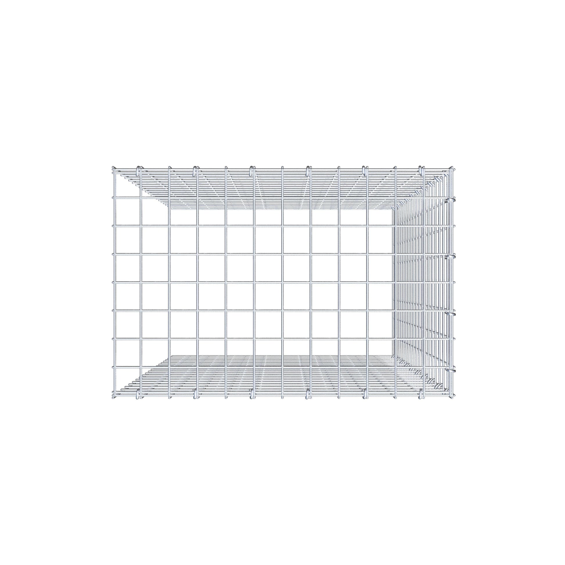 Este gabião não tem grade frontal e inferior. Isso permite que seu gabião cresça tanto em comprimento quanto em altura.