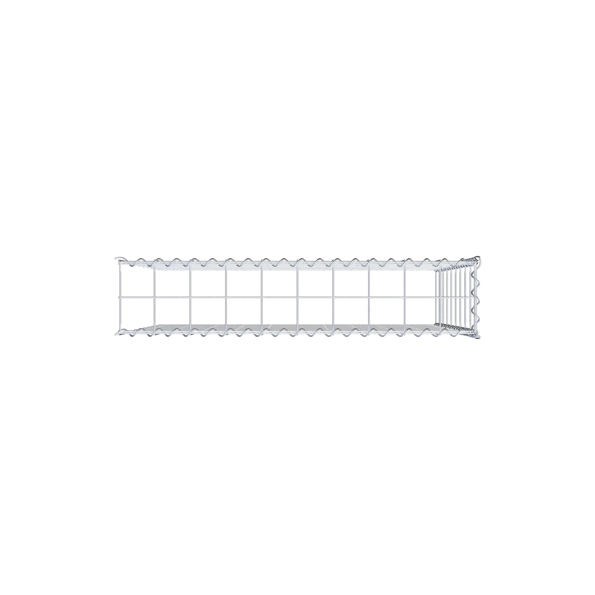 Este gabião não tem grade frontal e inferior. Isso permite que seu gabião cresça tanto em comprimento quanto em altura. Observe que o