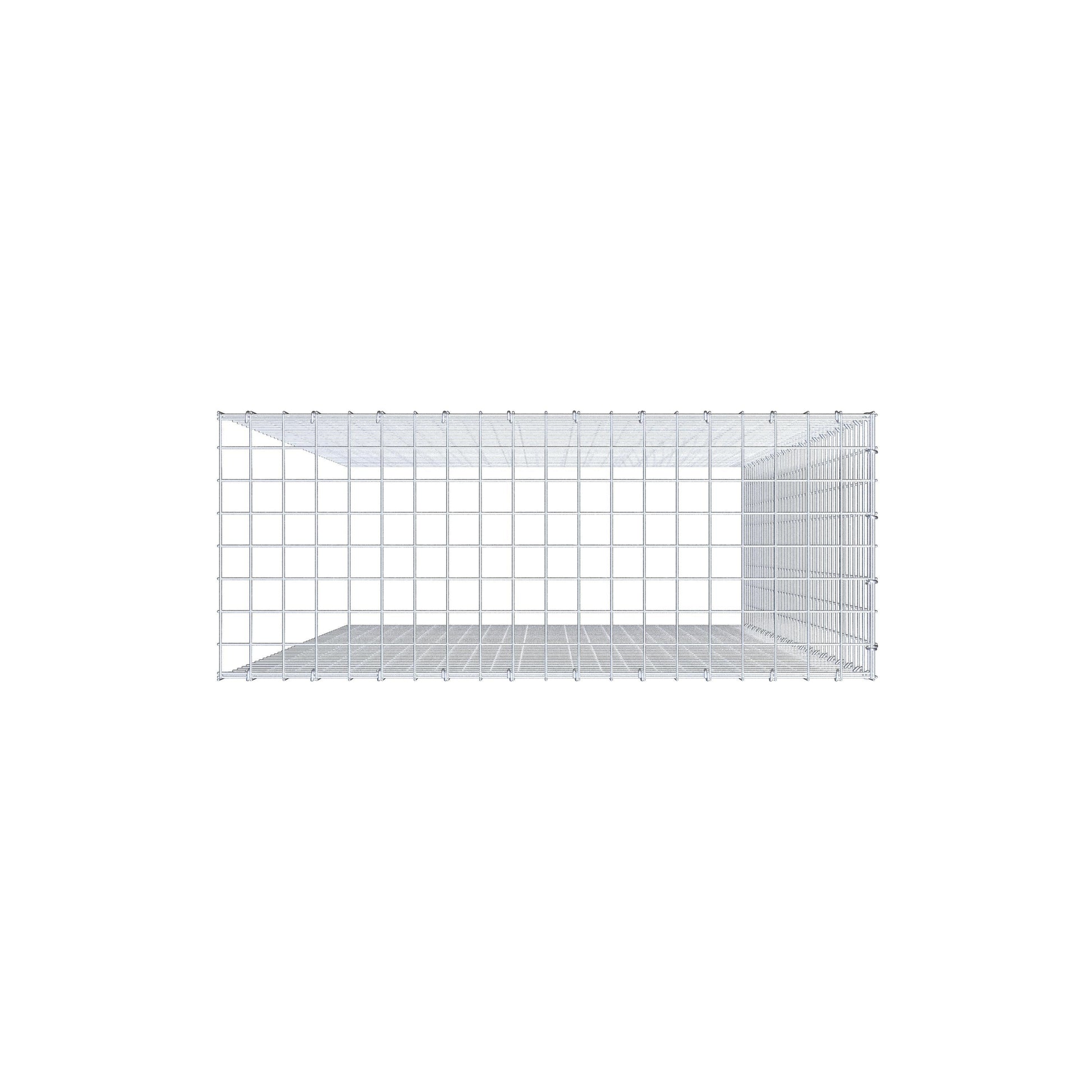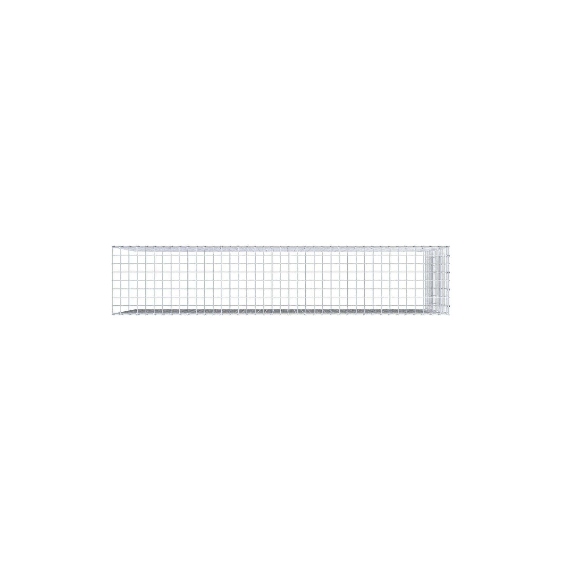 Este gabião não tem grade frontal e inferior. Isso permite que seu gabião cresça tanto em comprimento quanto em altura.