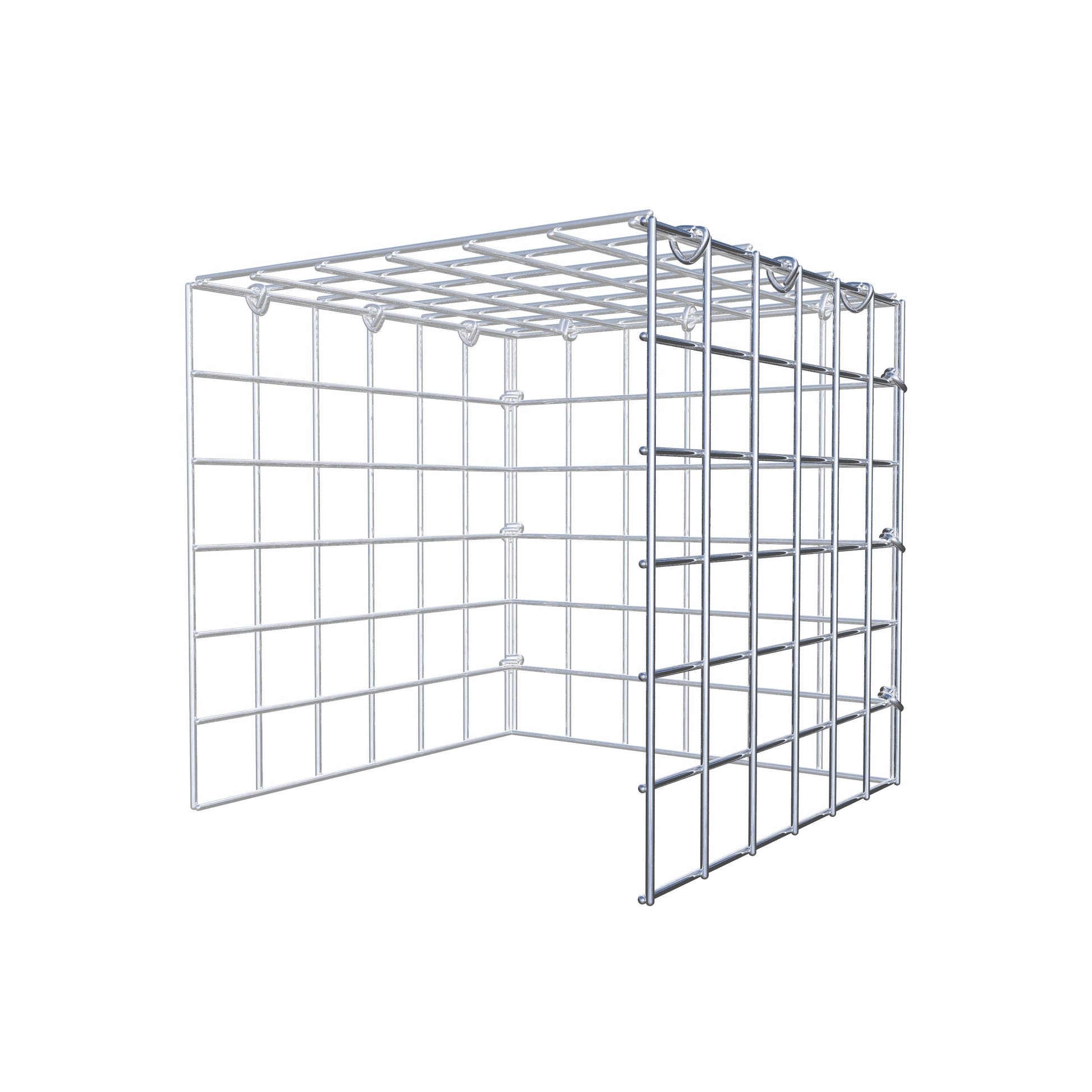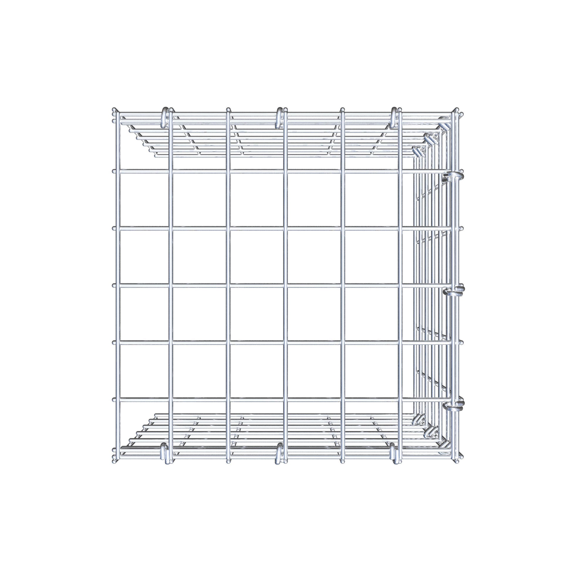 Este gabião não tem grade frontal e inferior. Isso permite que seu gabião cresça tanto em comprimento quanto em altura.