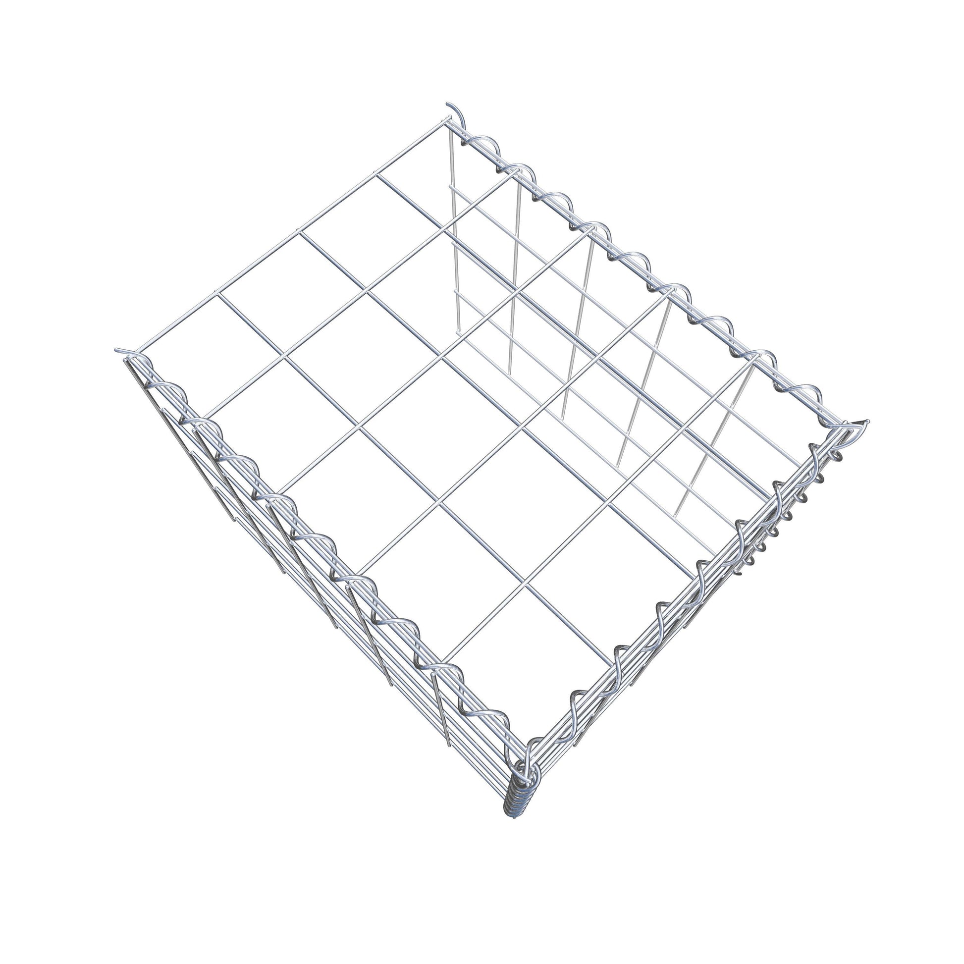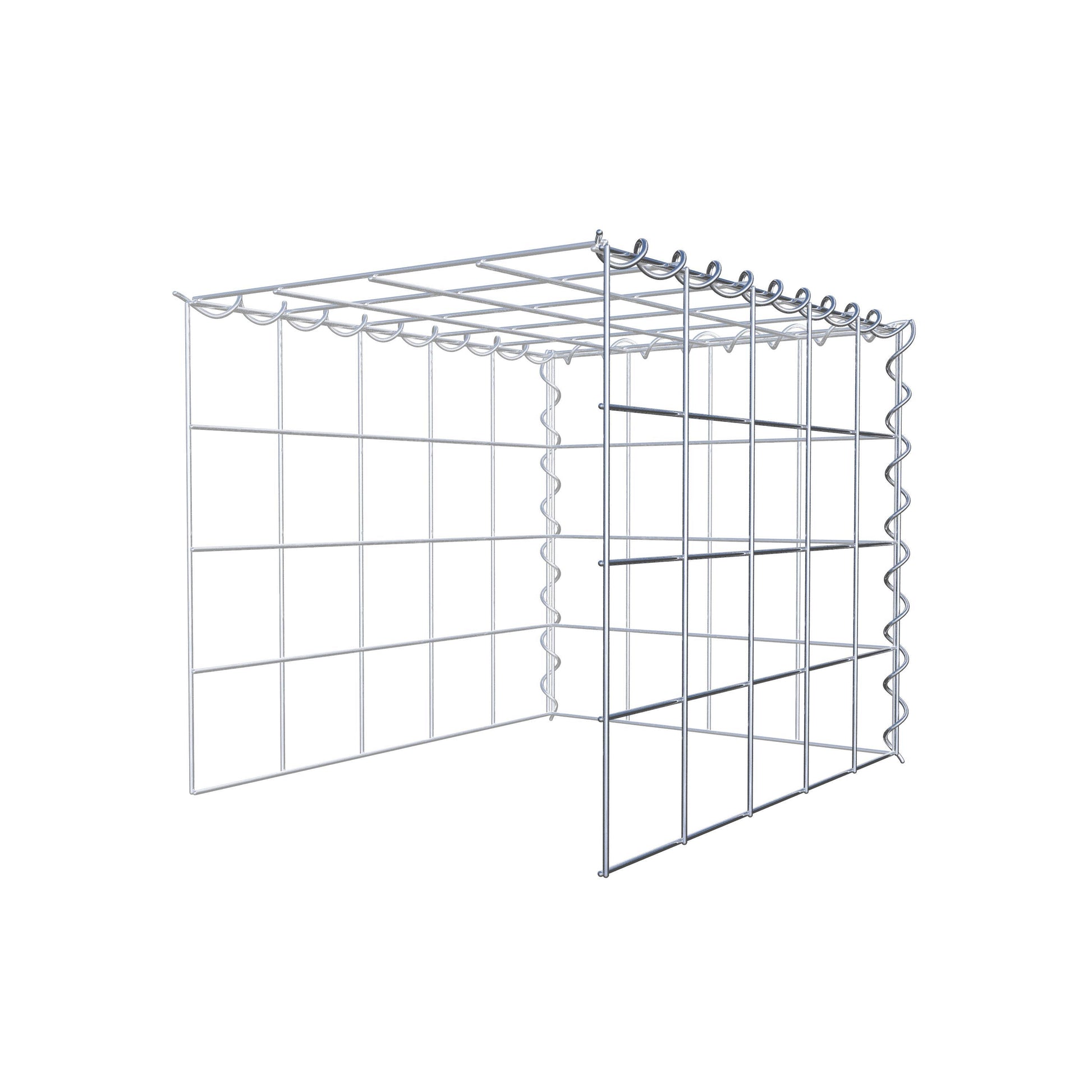 Este gabião não tem grade frontal e inferior. Isso permite que seu gabião cresça tanto em comprimento quanto em altura. Observe que o