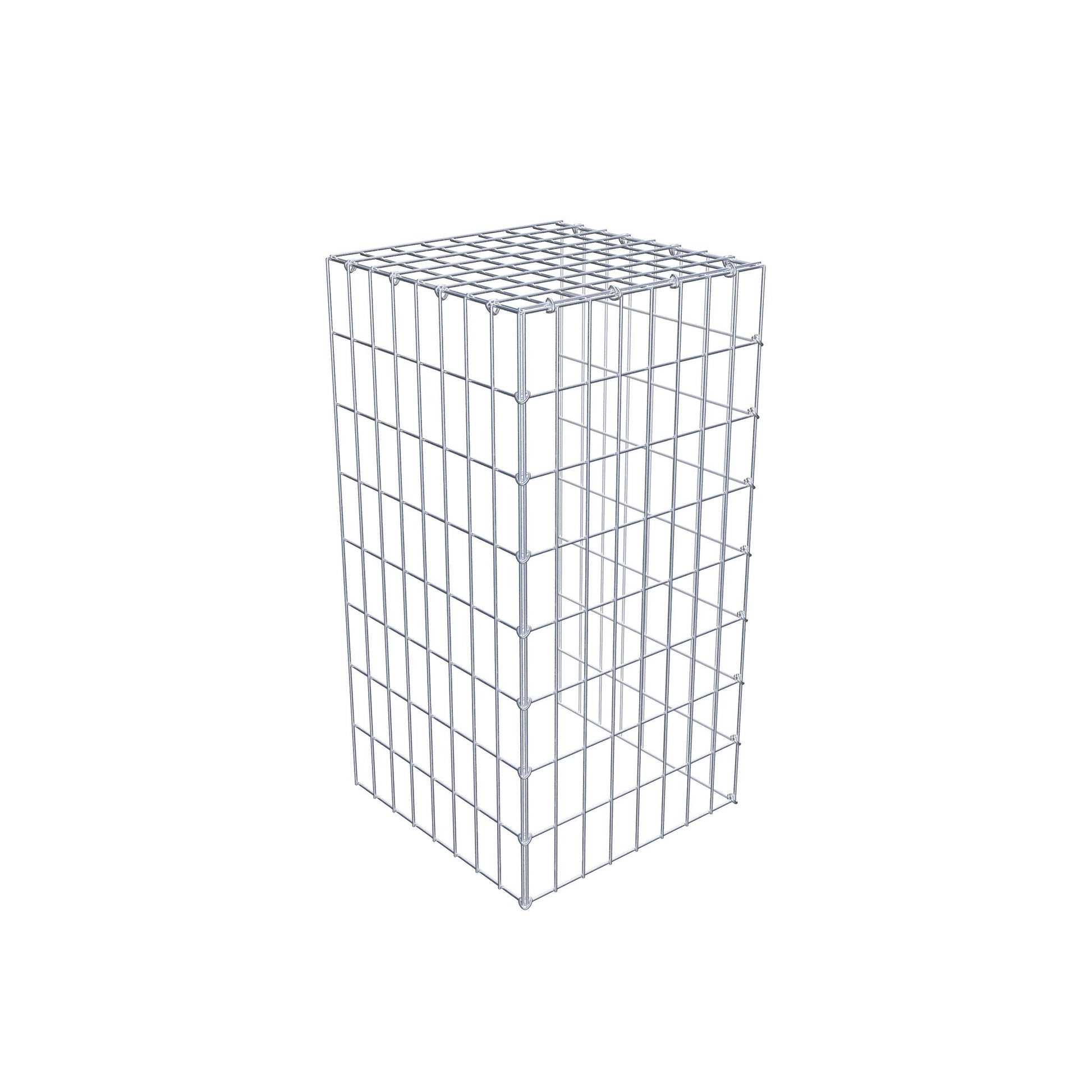 Este gabião não tem grade frontal e inferior. Isso permite que seu gabião cresça tanto em comprimento quanto em altura.